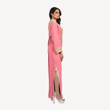 Saida Caftan – Coral Elegance and Artistic Embroidery