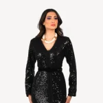 The Arej Caftan by Mautassin is a dazzling piece that embodies glamour and sophistication . This black sequined Moroccan caftan , crafted with exceptional craftsmanship, is designed to captivate the eyes at elegant evenings and prestigious events . Adorned with delicate embroidery and sparkling details , the Arej Caftan adds a unique touch of sparkle to your style. Ideal for those who love to combine Moroccan tradition and modernity , it is the perfect expression of luxury and elegance . Make your evenings unforgettable with this refined creation .