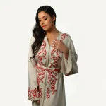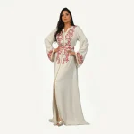 Caftan Nada – White Elegance with Pink and Silver Embroidery