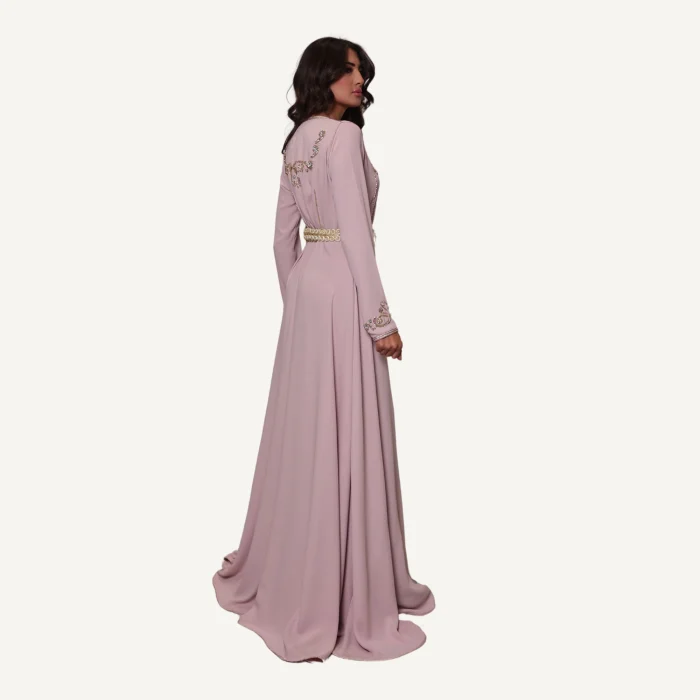 Caftan Salma – Nude Pink Elegance in Moroccan Haute Couture