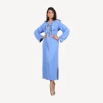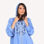 The fine, hand-stitched embroidery adds an artistic and precious touch, making this handcrafted djellaba a perfect choice for ceremonies, receptions, or elegant evenings. Offered in radiant shades such as soothing blue and vibrant coral, this djellaba is ideal for any special occasion.