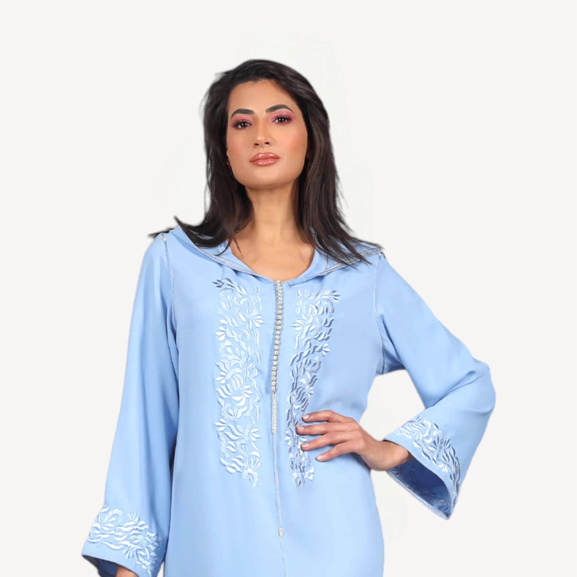 Aisha Embroidered Crepe Djellaba – Elegance and Comfort by Mautassin