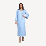 Available in sophisticated shades such as blue-grey and ecru , this handcrafted djellaba is ideal for a variety of occasions: weddings , formal receptions , or casual outings . Its fluid cut and silky texture make it a must-have choice for those looking for a versatile and chic outfit .