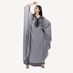 In a deep pearl grey enhanced with beaded black embroidery, the Inaya Gandoura embodies minimalist elegance with a dramatic twist. Chic and structured, it is perfect for both formal evenings and cultural events. Its flowing silhouette offers a look that is modern, mysterious, and effortlessly sophisticated.