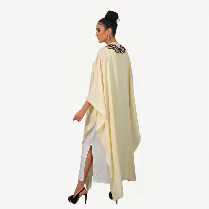 Discover the Lamis Gandoura by Mautassin, a refined piece that combines timeless elegance with exceptional comfort. Carefully crafted from premium georgette crepe and fine silk, this gandoura stands out with its flowing cut and meticulous finishes, such as delicate hand-applied beading. Its soft, versatile off-white hue makes it the perfect outfit for a wide range of occasions, from celebrations and elegant evenings to more casual moments. The Lamis Gandoura is designed to flatter all body types while offering unmatched comfort. Every detail of this handcrafted piece reflects Mautassin's excellence and expertise, making this gandoura essential for those seeking a look that is both sophisticated and practical.