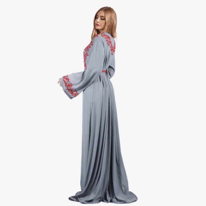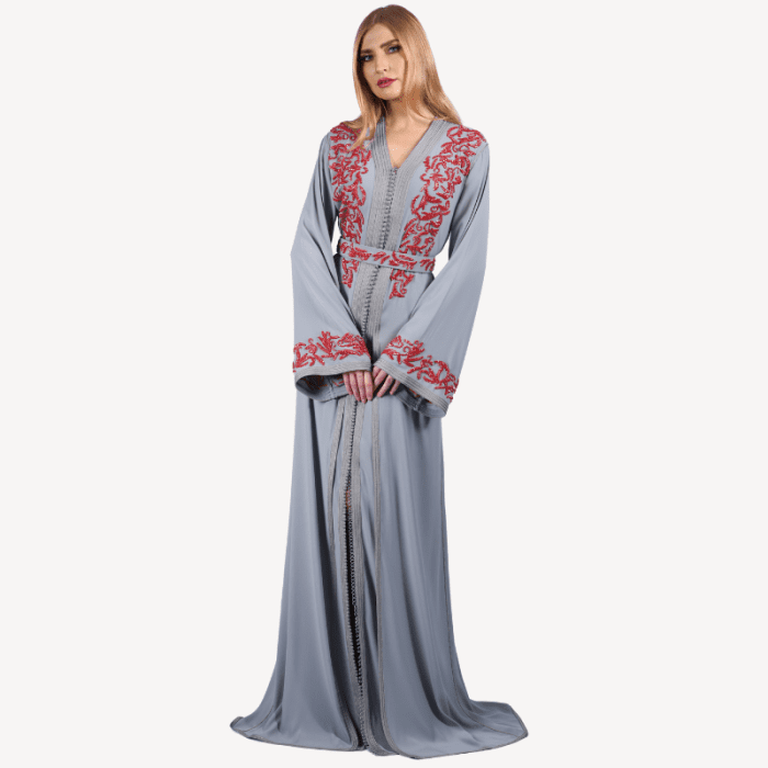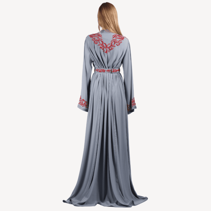Fluid Takchita Sara Mautassin – Light Grey and Red Embroidery