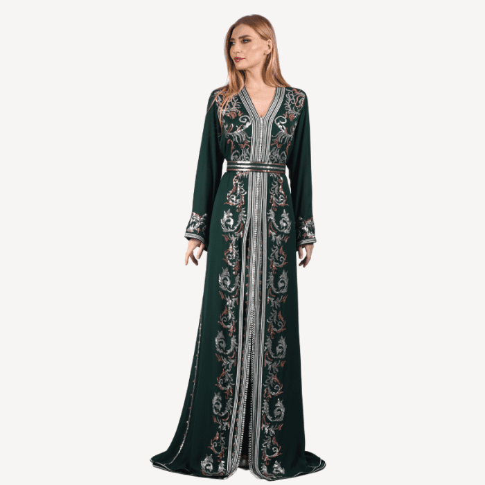 Fluid Takchita Yasmina Mautassin – Emerald Green and Gold Finishes