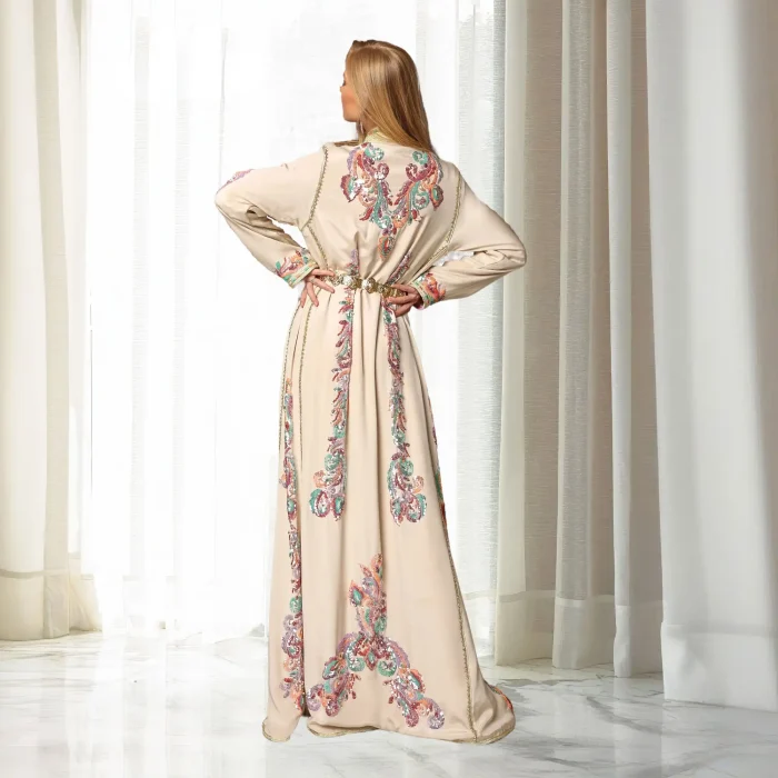 Mautassin vous présente la Takchita mariée rose, une robe marocaine d’une délicatesse exceptionnelle. Parfaite pour les mariages, cette takchita marocaine marie tradition et modernité avec élégance. Les détails fins et les broderies raffinées en font une pièce unique qui sublimera votre journée spéciale. Découvrez et achetez ce caftan en ligne pour incarner la beauté et le charme marocains.