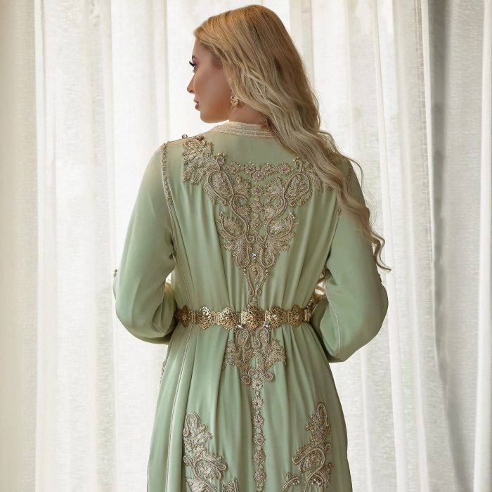 Takchita Warda – Sophistication in Water Green and Gold for a Majestic Wedding