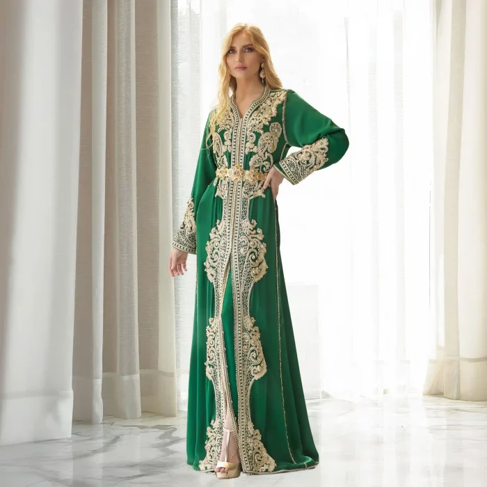 Takchita Zaina – Harmony of Tradition and Modernity in Green for an Elegant Bride