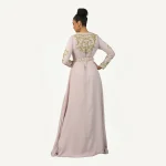 Caftan Arwa – Élégance Rose Nude et Broderies Dorées