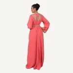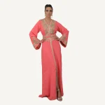 Caftan Ghalia – Élégance Corail et Broderies Artisanales