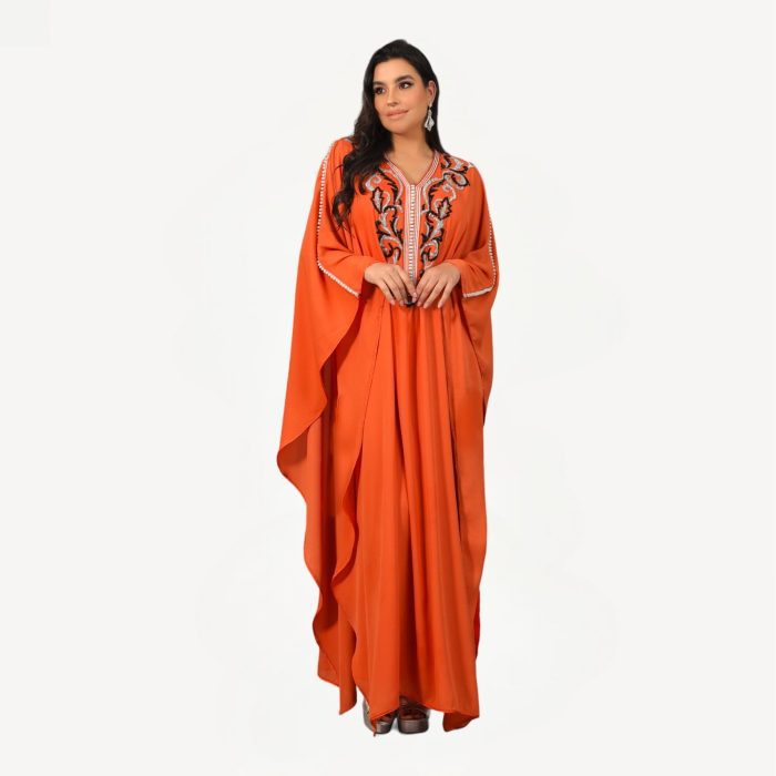 Djellaba Aisha en Crêpe Brodé – Élégance et Confort Signés Mautassin