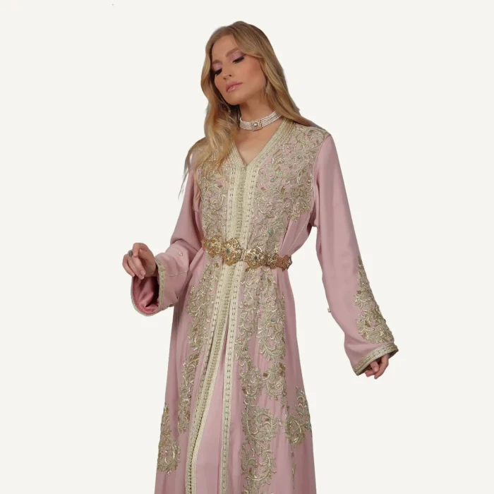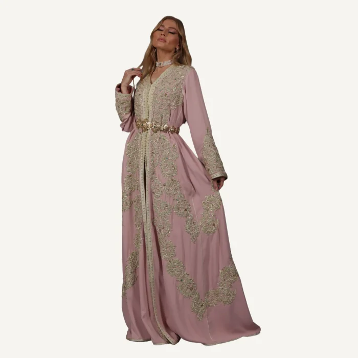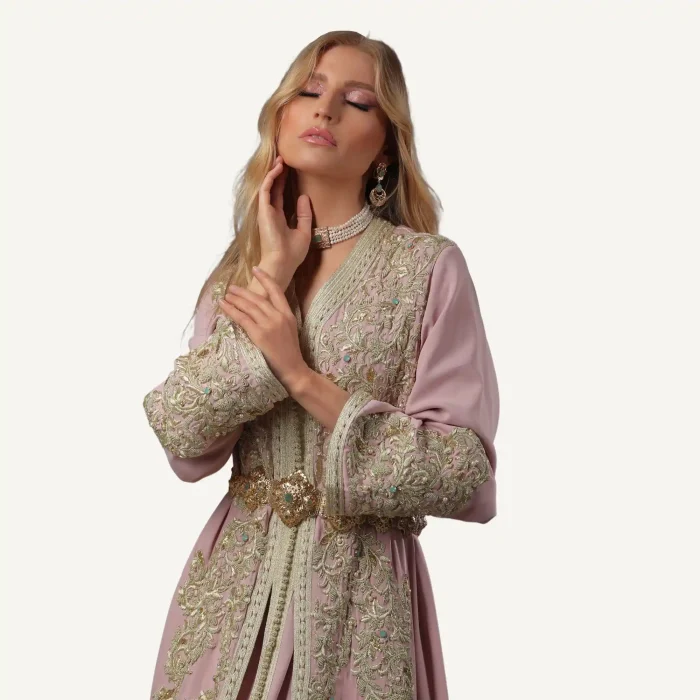 Takchita Dina Mautassin – Féminité Sublime en Rose Nude Brodé et Perlé