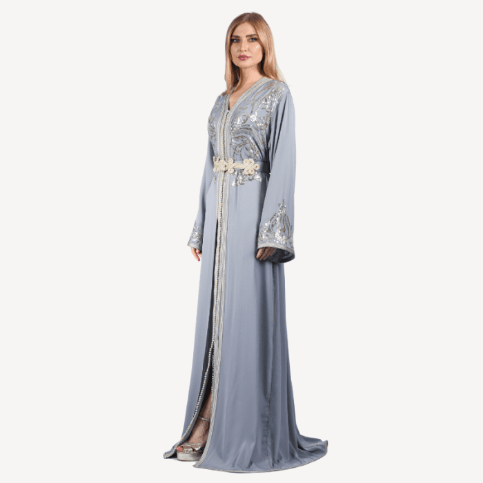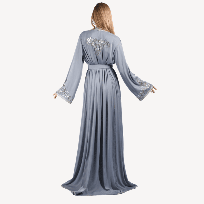 Takchita fluide Aya Mautassin – Gris Perle et Dorure Subtile