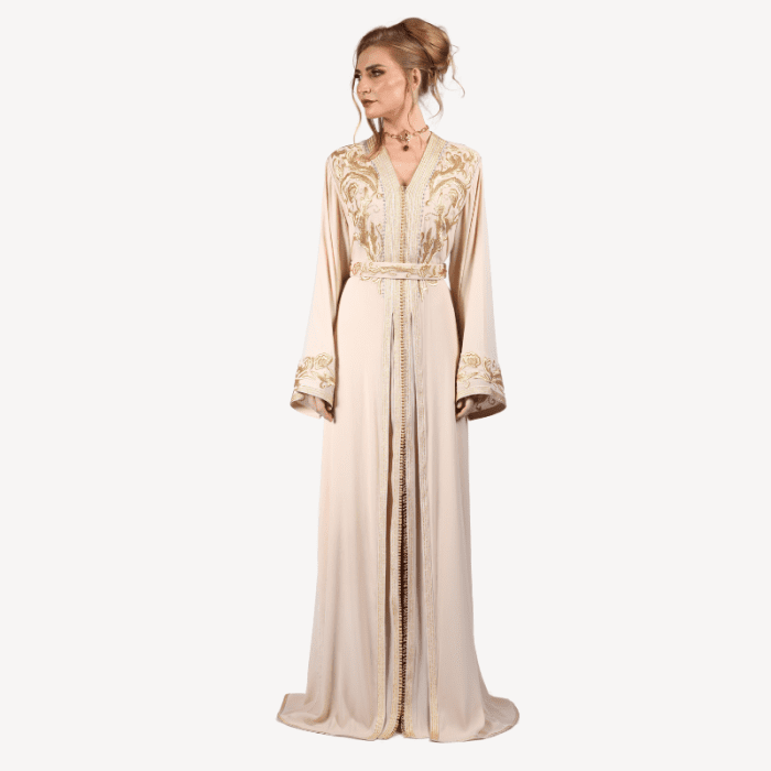 Takchita fluide Lina Crème Mautassin – Ton Beige et Finitions Subtiles