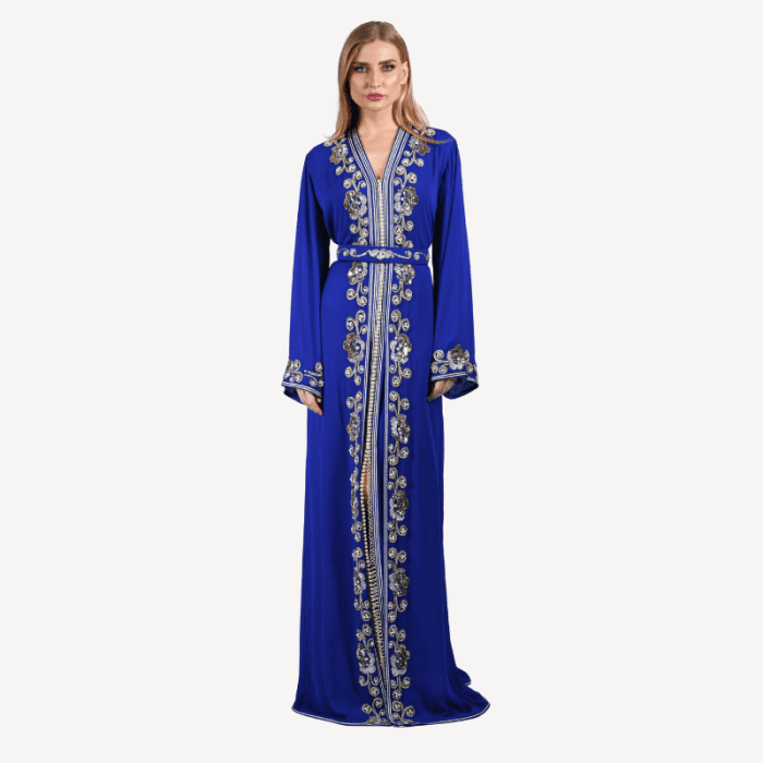 Takchita fluide Malak Mautassin – Bleu Royal et Détails Dorés