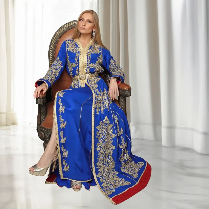 Takchita Jumana – Splendeur Royale en Bleu pour une Mariée Majestueuse