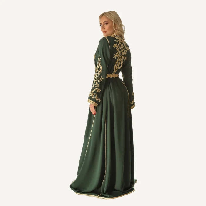 Takchita Maya Mautassin – Raffinement en Vert Bouteille et Broderies Dorées