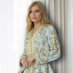 La Takchita Rasha, une création exceptionnelle signée Mautassin Haute Couture, incarne la finesse et l’élégance des caftans marocains. Brodée à la main dans une teinte bleu ciel apaisante, cette tenue est conçue pour les mariées recherchant un équilibre parfait entre tradition et modernité. Ornée de broderies délicates, elle reflète un savoir-faire artisanal d’exception. Idéale pour illuminer votre grand jour ou une occasion prestigieuse, cette Takchita est une véritable œuvre d’art qui sublimera votre silhouette.