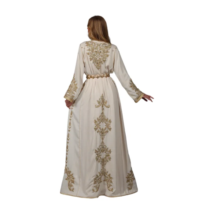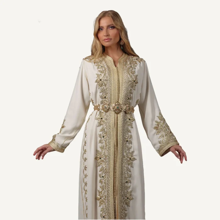 Son design subtil et raffiné fait de cette robe un choix parfait pour des mariages prestigieux, des réceptions élégantes, ou toute autre occasion où le luxe et la distinction sont de mise. Portez la Takchita Samira et laissez son allure irrésistible sublimer votre silhouette tout en reflétant votre style unique.